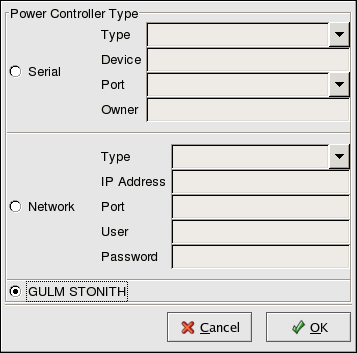 Users of Red Hat GFS can choose the Grand Unified Lock Manager (GULM) driver as their power controller by clicking the GULM STONITH radio button. The GULM driver is used in conjunction with the Red Hat Cluster Manager failover subsystem and features performance gains in the detection and fencing initialization of hung or failed cluster members.