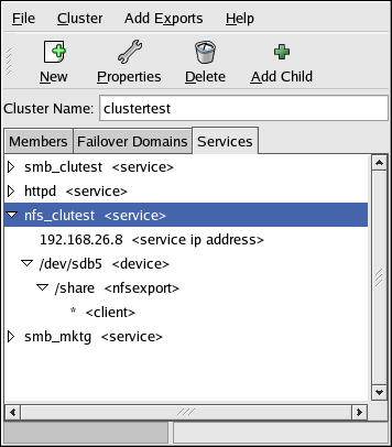 Service IP Address — NFS clients access file systems from an NFS server which is designated by its IP address (or associated hostname). To keep NFS clients from knowing which specific cluster member is the acting NFS server, the client systems should not use the cluster member's hostname as the IP address from which a service is started. Rather, clustered NFS services are assigned floating IP addresses which are distinct from the cluster server's IP addresses. This floating IP address is then configured on whichever cluster member is actively serving the NFS export. Following this approach, the NFS clients are only aware of the floating IP address and are unaware of the fact that clustered NFS server has been deployed.